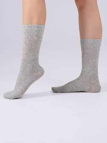 Однотонные женские носки. Выполнены из мягкого хлопкового полотна. Прочная и эластичная ткань приятна для тела, прекрасно пропускает воздух, впитывает воду, не электризуется и подходит для чувствительной кожи. Добавка эластана в женские носки придает им эластичность и гарантирует, что носки не потеряют цвет даже после многочисленных стирок. Мягкие носки прекрасно подходят для повседневной носки, занятий спортом и активного отдыха.