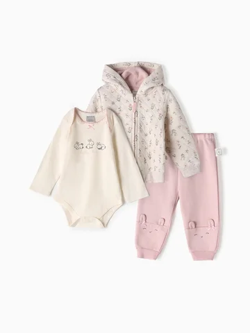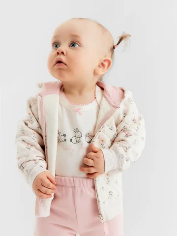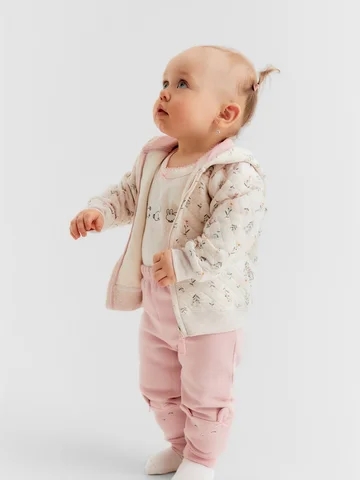 Костюм (джемпер, штанишки, боди) Крошка Я, рост 62-68 см, бежевый/розовый.
