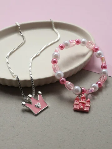 - Очаровательный дизайн: бело-розовые оттенки и стильная корона делают украшения особенно привлекательными для маленьких модниц.