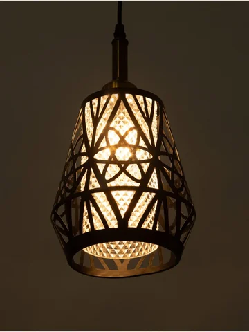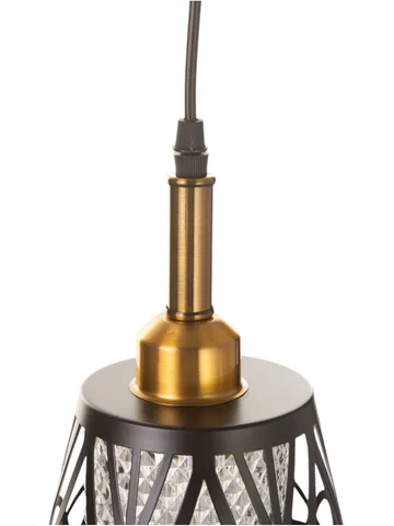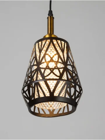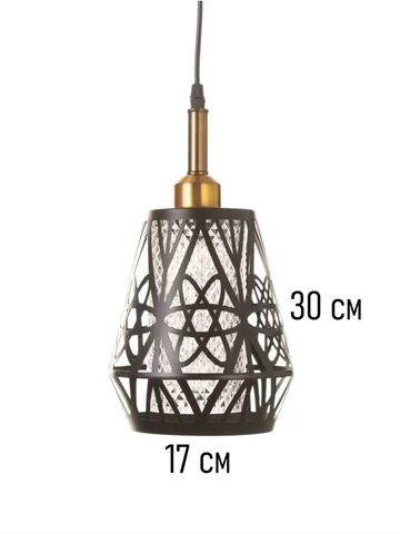 - Оригинальный дизайн: комбинация черного и золотого цветов делает светильник визуально привлекательным и уместным в различных интерьерах. Геометрический узор плафона подчеркивает стиль и характер изделия.