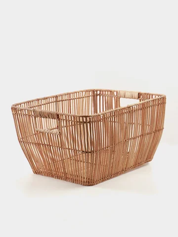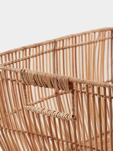 - Эстетика природных материалов: корзина из ротанга, цвета утонченного коричневого, привнесет теплоту и стиль в интерьер. Ее естественная текстура добавит обаяния, гармонируя с любым дизайном.