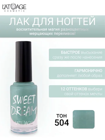 "Sweet Dream" Лак для ногтей тон 504 9 г. (L'atuage). Восхитительная магия разноцветных мерцающих переливов! Ухоженные ноготки, покрытые лаком, прекрасно выглядят и привлекают внимание, гармонично дополняя образ.