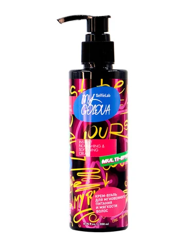 "My Golova" Крем-вуаль для мгновенного питания и мягкости волос 200мл (Selfielab). Its amazing! Твои волосы будут в восторге от легкого несмываемого ухода! Активные компоненты протеинов шелка и пшеницы увлажнят, защитят, придадут блеск и сияние. Крем-вуаль облегчит расчесывание и обеспечит контроль над пушистостью волос. Ну не счастье ли?! Небольшое количество нанести на влажные или сухие волосы и расчесать их, равномерно распределяя средство по всей длине. Не смывать Состав: Aqua, Cetearyl Alcohol, Dipalmitoylethyl Hydroxyethylmonium Methosulfate, Ceteareth-20, Cetrimonium Chloride, Hydrolyzed Silk, Hydrolyzed Keratin, Phenoxyethanol, Potassium Sorbate, Hydrolyzed Wheat Gluten, Рanthenol, Hydroxyethylcellulose, Sodium Acetate