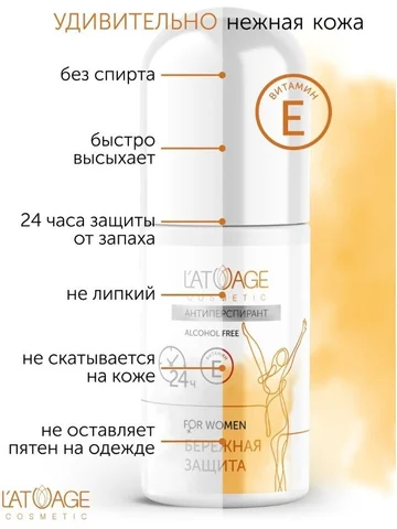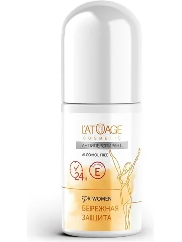 Антиперспирант БЕРЕЖНАЯ ЗАЩИТА (L'atuage). Безалкогольные антиперспиранты шариковые LATUAGE COSMETIC сочетают в себе эффективное уменьшение потоотделения с дезодорирующими свойствами и одновременным уходом за кожей. Благодаря содержанию витамина Е они эффективно защищают чувствительную кожу подмышек, а нежный аромат дарит ощущение комфорта на долгие часы. Антиперспиранты не оставляют следов на одежде. Дезодоранты сочетают в себе двойное антиперспирантное действие: АНТИГИДРОТИЧЕСКОЕ - эффективно снижает потоотделение и ДЕЗОДОРИРУЮЩЕЕ - нейтрализует запах пота и обеспечивает длительное ощущение свежести. Способ применения: нанести на чистую и сухую кожу подмышек.
