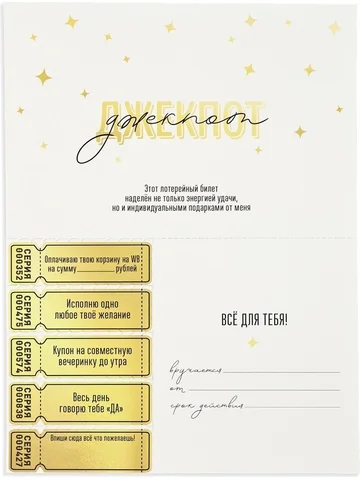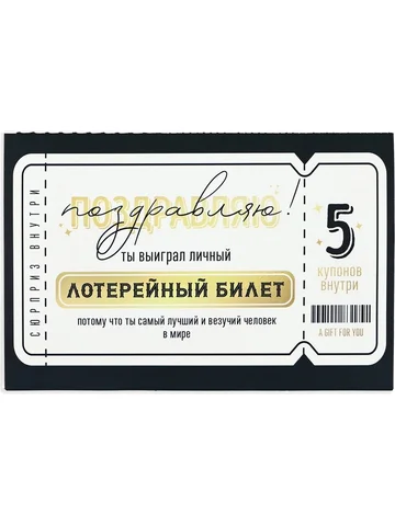 Открытка с купонами «Лотерейный билет», 12×18 см.