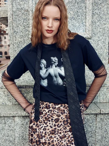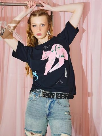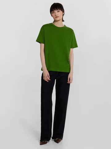 Женская футболка оверсайз для стильных и комфортных образов! Модель с круглой горловиной и короткими рукавами станет вашим незаменимым элементом гардероба. Для выполнения этой модели использовали кулирную гладь – приятный к телу эластичный материал, отличающийся особой прочностью. Позвольте себе быть в центре внимания, выбрав эту футболку, которая не только подчеркнет ваш стиль, но и обеспечит комфорт в любой ситуации.