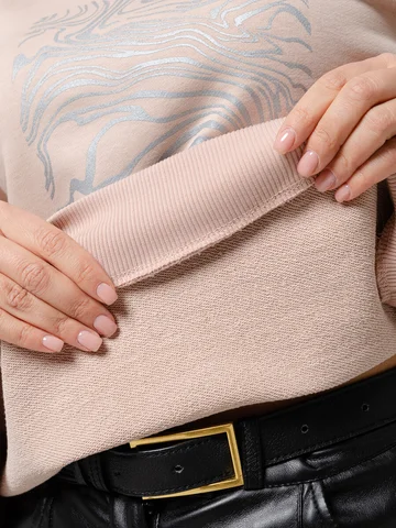 Свитшот женский - незаменимая базовая вещь вашего гардероба. Стильная, модная толстовка выполнена из качественного хлопкового трикотажа ( футер 3х нитка без начеса), который не деформируется при стирке и во время носки. На груди лаконичный оригинальный принт, который впишется в любой образ. Рукав спущенный. Размер на модели 44, рост 164 см. Состав хлопок 70%, полиэстер 30%. Рекомендации по уходу : бережная стирка при 30 градусах