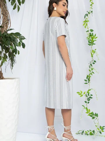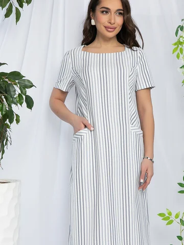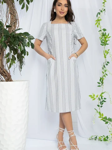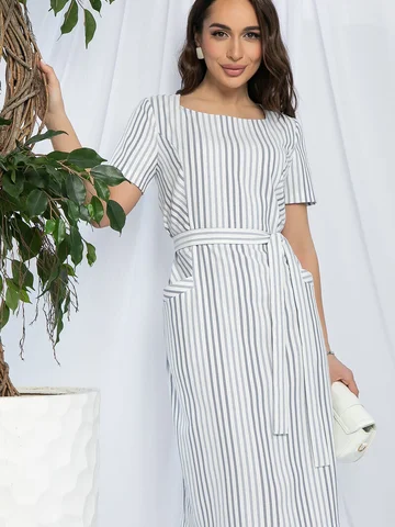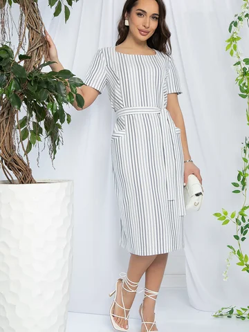 Платье в полоску - стильное и оригинальное решение в гардеробе каждой женщины. Оно поможет акцентировать внимание на красивой фигуре, а также скрыть недостатки нестандартной комплекции. Такое платье прекрасно дополнит ваш базовый гардероб. Вырез горловины - каре красиво подчеркнет ключицы. Рукав втачной, короткий. Принт "полоска" визуально вытянет фигуру и сделает стройнее. В комплекте пояс из основной ткани.