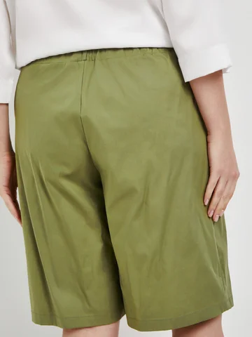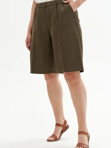 Женские шорты больших размеров, выполнены из текстильного полотна с эластаном. Верхняя часть на резинке для максимального комфорта, шорты с двумя карманами.