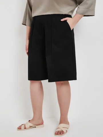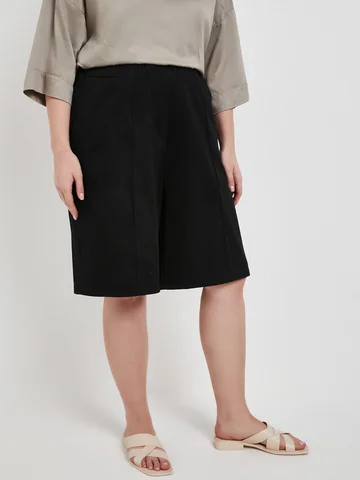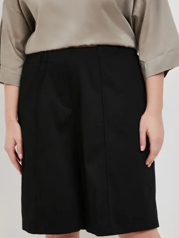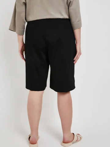 Женские шорты больших размеров, выполнены из текстильного полотна с эластаном. Верхняя часть на резинке для максимального комфорта, шорты с двумя карманами.