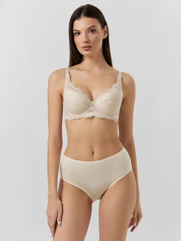 Этот бюстгальтер макси — сочетание изысканности, комфорта и надежной поддержки. Нежное эластичное кружево придает модели утонченный, женственный акцент, мягко повторяя контуры тела. Верхняя деталь чашки выполнена из эластичного кружева, создавая легкость и элегантность. Пластины в боковых частях обеспечивают дополнительную фиксацию и удобную посадку, а регулируемые бретели позволяют адаптировать модель под индивидуальные параметры. Застежка на спинке гарантирует надежную фиксацию, обеспечивая комфорт при носке. Идеальный выбор для тех, кто ценит нежность, поддержку и элегантный дизайн!