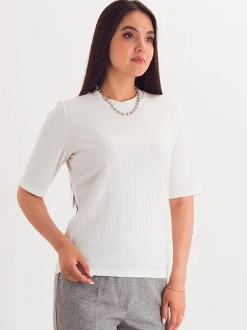 Лаконичный джемпер с коротким рукавом идеален для составления базовых образов.