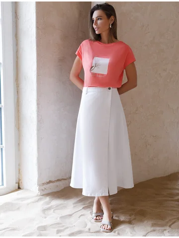 Футболка с цельнокроеным рукавом выполнена из премиального хлопка с эластаном. Авторский принт нанесен красками с устойчивым покрытием, надпись серебристой фольгой. Изделие отлично держит форму, почти не мнется и комфортно сидит по фигуре. Отдельным украшением служит металлический логотип бренда.