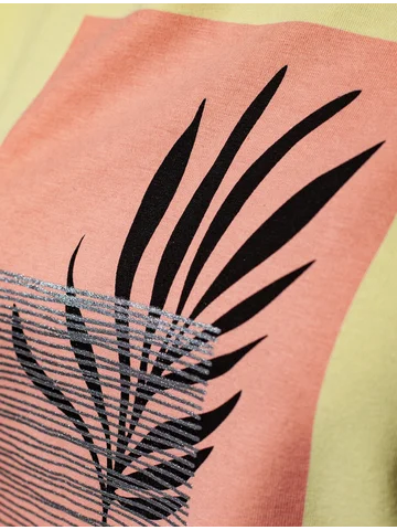 Футболка с цельнокроеным рукавом выполнена из премиального хлопка с эластаном. Авторский принт нанесен водными красками с устойчивым покрытием. Изделие отлично держит форму, почти не мнется и комфортно сидит по фигуре. Отдельным украшением служит металлический логотип бренда.