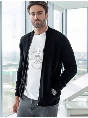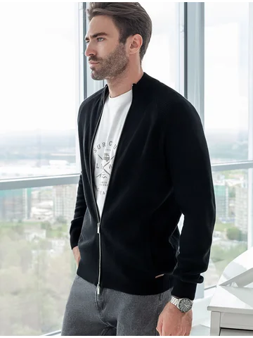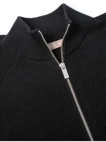 Черный джемпер с длинными рукавами поддержит образы любой палитры и сложности. За многофункциональность отвечают лаконичный крой и застежка на молнию. Изделие связано из премиального хлопка с добавлением акрила, которые не дадут замерзнуть в прохладный день на улице, но при этом не перегревает в помещении.