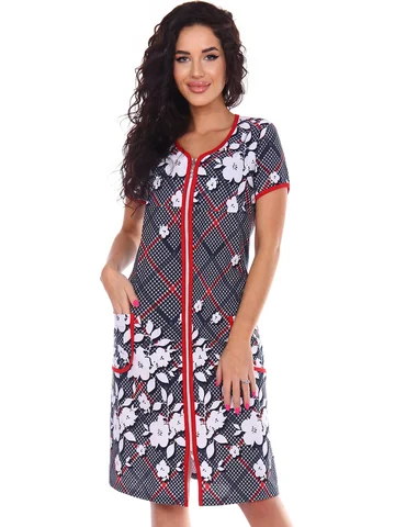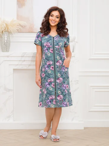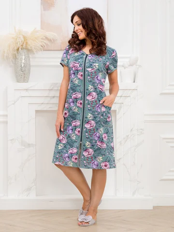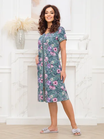 Трикотажный халат "Кира" изготовлен из 100% кулирки. Модель на молнии, дополнена двумя накладными карманами. Порадуйте себя качественным и комфортным халатом.