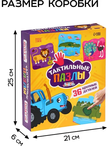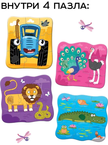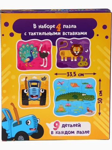 Макси - пазлы с тактильными вставками «Животные», 36 деталей, Синий трактор. Тактильные макси-пазлы «Животные» — это увлекательная игра для детей, которые любят собирать яркие картинки и открывать новые ощущения. Этот набор включает 4 тематических пазла с любимыми героями из мультфильма «Синий трактор». Каждый пазл дополнен специальными тактильными элементами, что делает процесс сборки не только зрительным, но и сенсорным опытом. Что внутри?