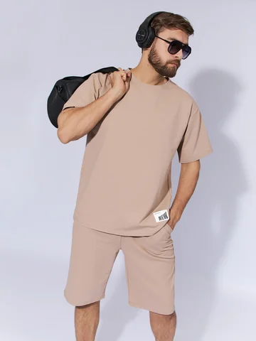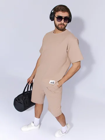 Спортивный мужской костюм – это базовая и неотъемлемая часть гардероба современного мужчины. Комплект состоит из удобной футболки oversize и практичных шорт. Футболка свободного кроя с коротким рукавом и стильными разрезами по бокам. Шорты оснащены вертикальными карманами в боковых швах и комфортной посадкой на талии благодаря эластичному поясу на резинке. Костюм выполнен из высококачественного трикотажного полотна премиум-состава: 72% хлопок, 20% полиэстер, 8% лайкра. Добавление лайкры гарантирует, что изделие сохраняет идеальную форму после множества стирок, не вытягивается и не скатывается, обеспечивая долговечность. Этот спортивный костюм-двойка – идеальный выбор для осеннего сезона, для активных занятий спортом, прогулок в прохладную погоду и отдыха на свежем воздухе. Мягкий и дышащий материал создает непревзойденный комфорт для расслабленного отдыха дома. Универсальный комплект подойдет для тренировок, занятий фитнесом, а также для повседневной носки в городе. Современный дизайн с элементами оверсайз делает его актуальным для создания модных образов. Комплект компактно упаковывается, что делает его идеальным спутником в поездках и путешествиях. Доступен в широкой размерной сетке для взрослых мужчин и подростков. Позаботьтесь о своем комфорте и стиле этой осенью с нашим практичным и функциональным костюмом.