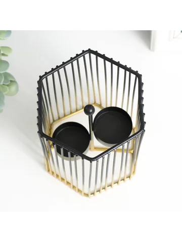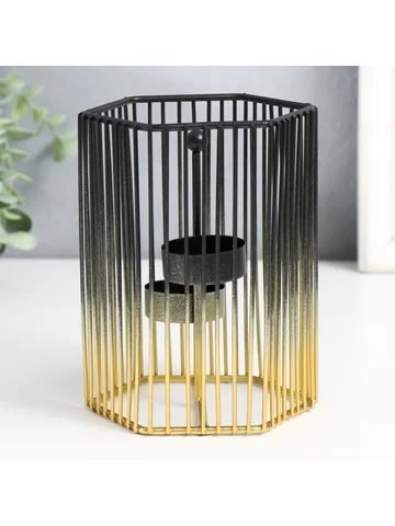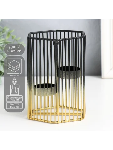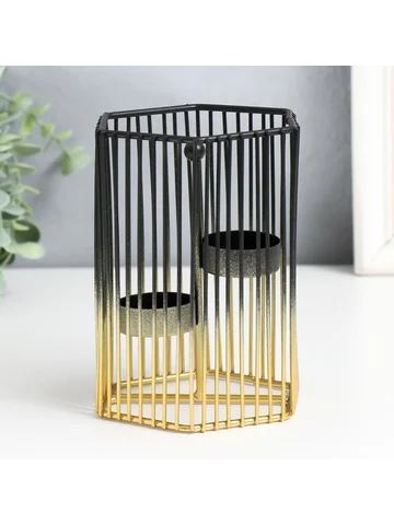 Металлический подсвечник на 2 свечи «Шестиугольная клетка», d=4.5 см, золото-черный, 11.5×11.5×15.5 см.