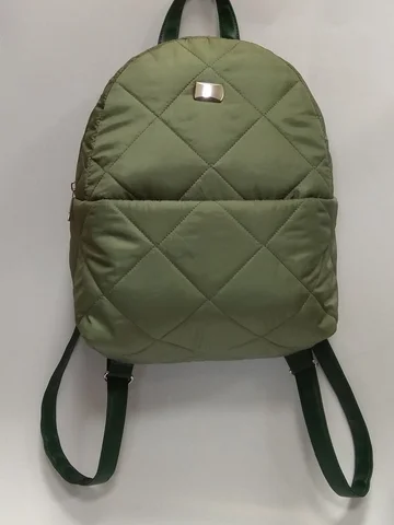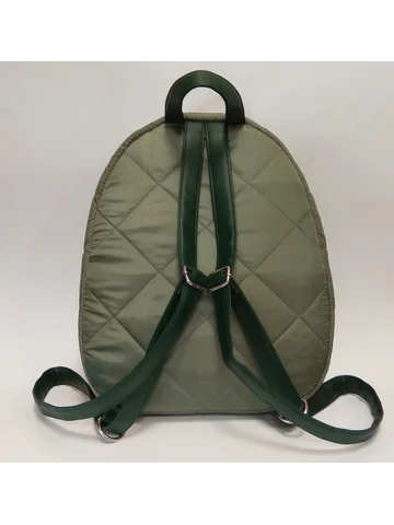 Легкий, стильный рюкзак из прочной стеганой курточной ткани с удобным скрытым передним карманом с одним отделением, внутри карман на молнии и открытый карман на резинке. Декорирован классическим металлическим декором.