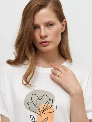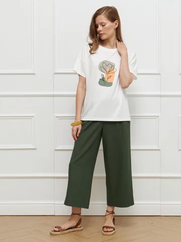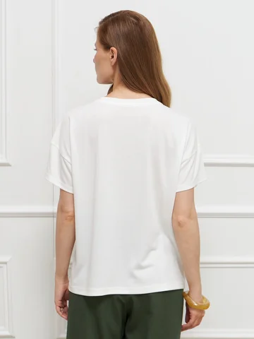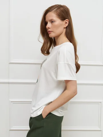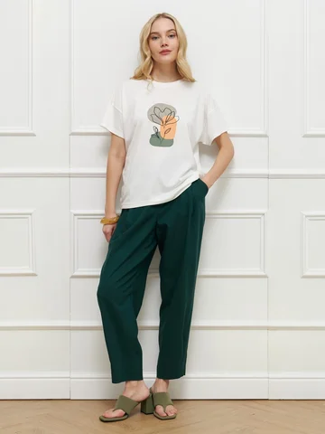 Футболка прямого кроя, с низкой проймой и короткими рукавами, выполнена из стрейчевого вискозного трикотажа и украшена дизайнерским принтом, напоминающим о красоте окружающего мира. Модель отлично дополняет летние комплекты. На фото джемпер представлен с брюками Б-2006 ТРВ(Л5).