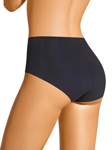 Женские трусы слипы с завышенной посадкой выполнены из полиамида и дополнены хлопковой ластовицей. У модели сзади и по линии бикини бесшовная гладкая обработка, спереди декоративные диагональные вставки из плотной сетки, перед дублирован сеткой, по талии обработка с зигзагом и узкой резинкой. Рекомендуемая температура стирки - до 30 градусов.