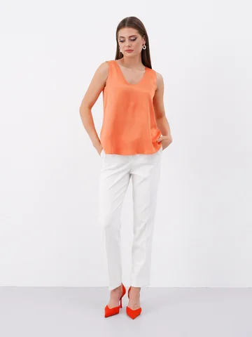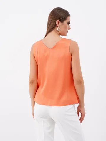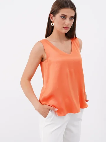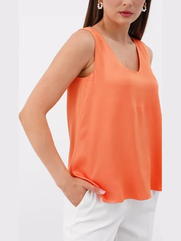 Блузка свободного силуэта бренда Ketty из однотонной вискозной ткани без рукава. Красивая легкая блузка, слегка расширенная к низу. Стильная вещь, которая отлично сочетается с жакетами, пиджаками и кардиганами. Однотонная блузка станет основой вашего гардероба и разнообразит комплекты повседневной одежды, а также может стать частью вечернего образа.