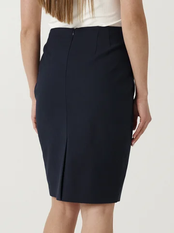 Юбка женская из костюмной хлопковой ткани для повседневной носки. Полуприлегающего силуэта длиной до колена. Юбка имеет потайную застежку-молнию в среднем шве заднего полотнища. Средний шов заканчивается шлицей. Юбка на поливискозной подкладке.