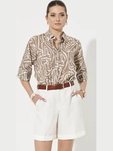 Блузка женская из хлопчатобумажной ткани прямого силуэта для повседневной носки. В блузке имеется центральная бортовая застежка на девять обметанных петель и девять пуговиц. В боковых швах имеются небольшие разрезы. Горловина обработана рубашечным воротником с отрезной стойкой. Блузка с втачным рукавом длиной чуть ниже локтя, низ рукава обработан притачной манжетой. Очень легкая и воздушная блузка подарит вашему телу комфорт, а также будет отлично смотреться на вашей фигуре.