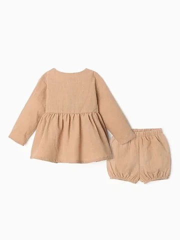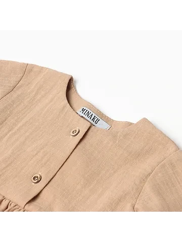 Комплект для девочки (туника, шорты) MINAKU, бежевый, размер 62-68. Летний комплект для девочки включает тунику и шорты, выполненные из хлопковой ткани. Однотонный бежевый цвет подходит для повседневной носки и сочетания с различными аксессуарами, создавая гармоничный образ для малышки. Простая модель без декоративных элементов делает этот набор универсальным и легким для ухода, а мягкая фактура обеспечивает комфорт в жаркую погоду и по всему летнему сезону. Особенности