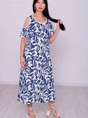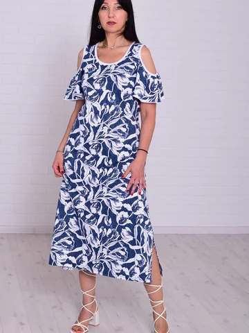 Состав: 100%-хлопок. Женский хлопковый сарафан в длине миди свободного кроя, А-силуэт, горловина круглая, плечо открытое, рукав-крыло, по бокам по низу платья разрезы. Уход: бережная стирка 30%. Длина платья: 46-122,48-123,50-124,52-124,54-125,56-125. Ширина по линии груди: 46-48,48-50,50-52,52-54,54-56,56-58. Ширина по линии талии: 46-46,48-48,50-50,52-52,54-54,56-56. Ширина по линии бедра: 46-56,48-58,50-60,52-62,54-64,56-66.
