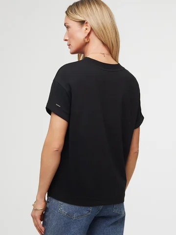 Очень качественная футболка) написала в самый раз, но это не совсем верно, примеряла три футболки этого бренда разных фасонов одного размера) выкупила две - одна сидит свободно, а эта поплотнее) я привыкла к оверсайз - решила попробовать вещь по фигуре, посмотрим как будет носится.))