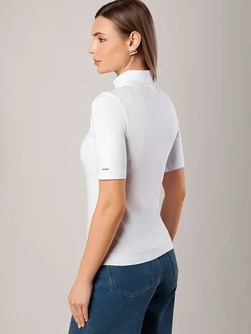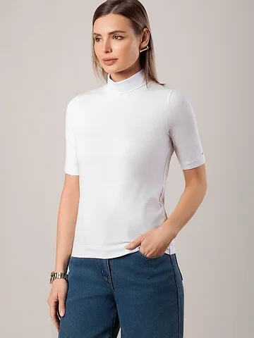 Водолазка с коротким рукавом выполнена из премиального хлопка с добавлением эластана. Гладкий трикотаж обеспечит гарантированный комфорт и удобство в использовании. Внизу изделия металлическая нашивка с логотипом бренда. Совет стилиста: водолазка может заменить рубашку в нестрогом офисном образе или подружиться с джинсами-трубами, жилетом и кедами в расслабленном повседневном наряде.