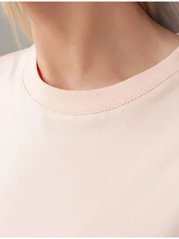 Базовая однотонная футболка из премиального хлопка. Горловина выполнена из рибаны в тон изделия, Добавление эластана в состав изделия способствует формоустойчивости. Самое высокое качество хлопковых волокон обеспечивает комфорт в любое время года. Идеально держит форму и сохраняет внешний вид в течение долговременного использования. Универсальная базовая вещь для ваших стилистических решений. Изделие дополнено металлическим логотипом бренда на рукаве.