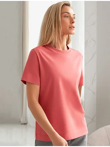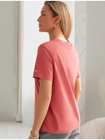 Базовая однотонная футболка из премиального хлопка. Горловина выполнена из рибаны в тон изделия, Добавление эластана в состав изделия способствует формоустойчивости. Самое высокое качество хлопковых волокон обеспечивает комфорт в любое время года. Идеально держит форму и сохраняет внешний вид в течение долговременного использования. Универсальная базовая вещь для ваших стилистических решений. Изделие дополнено металлическим логотипом бренда на рукаве.