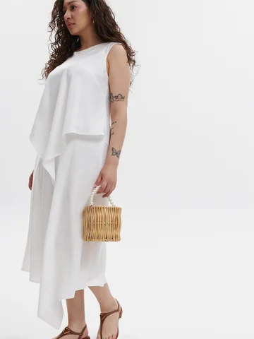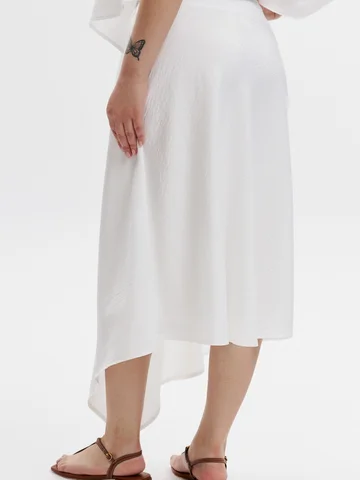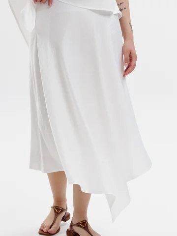 Юбка трапециевидного силуэта на подкладе асимметричного кроя.