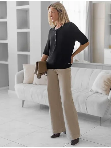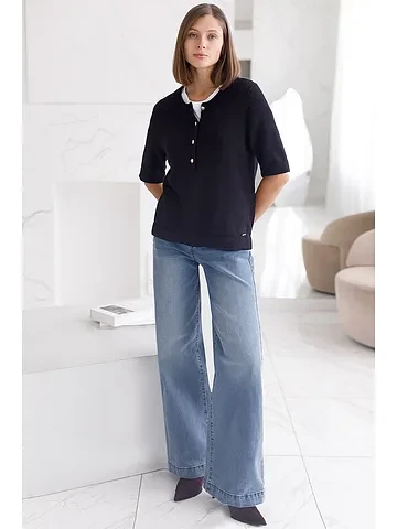 Хотелось бы пояснить, что свободный низ — это особенность кроя данной модели. Он выполнен без плотного прилегания, чтобы джемпер сидел максимально естественно. Если Вы хотите сделать край более ровным и убрать эффект «волны», рекомендуем слегка пригладить низ утюгом или аккуратно отпарить. Главное — делайте это на горизонтальной поверхности, чтобы избежать случайного растяжения трикотажа.