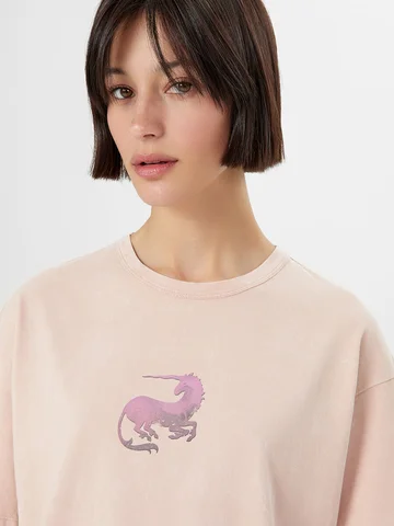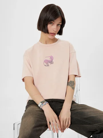 Женская футболка прямого свободного силуэта — это базовая и универсальная модель, которая легко впишется в повседневный гардероб. Классическая круглая горловина придает образу аккуратность, а короткие рукава обеспечивают комфорт в теплое время года. Свободная посадка не сковывает движений и подходит для любого типа фигуры, создавая расслабленный и современный силуэт. Нижние срезы изделия и рукавов аккуратно обработаны швом вподгибку, что подчеркивает качество исполнения и сохраняет форму после стирок. Натуральный хлопок в составе ткани делает футболку мягкой, дышащей и приятной к телу — отличный выбор для повседневной носки, прогулок или отдыха.