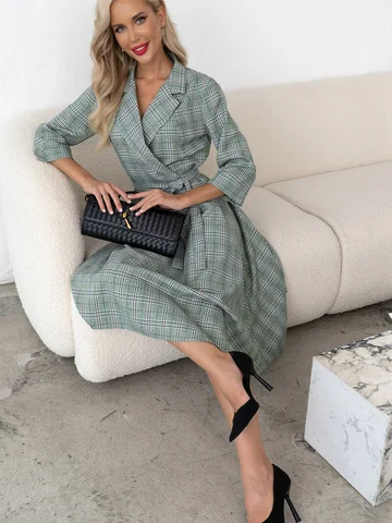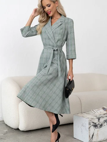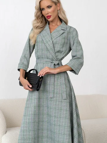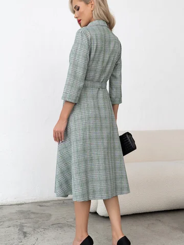 Элегантное платье в для деловых встреч и работы в офисе. Расклешенная юбка идеально подойдет для любого типа фигуры. В боковом шве-потайная молния, пояс в комплекте. Рукав 3/4 с манжетой.