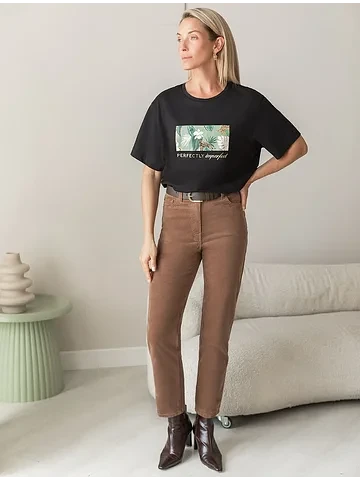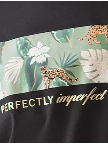 Перевод принта: "Perfectly imperfect - идеально несовершенная". Футболка прямого кроя выполнена из 100% хлопка. Базовая модель с лаконичным авторским принтом легко впишется в повседневный гардероб. Хорошо держит форму и обеспечивает комфортный микроклимат в течение дня.