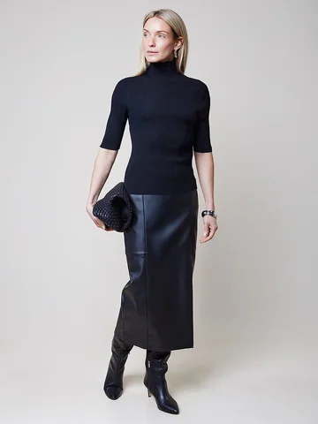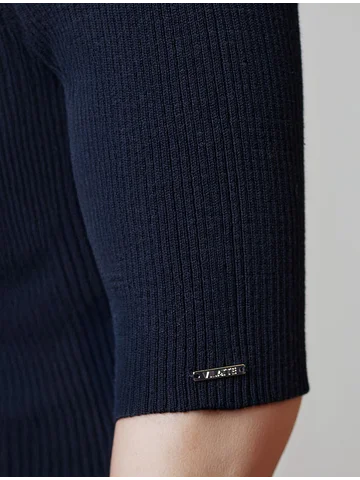 Водолазка тонкой вязки в рубчик выполнена из хлопка. Лаконичная модель с коротким рукавом дополнена металлическим логотипом бренда. Изделие идеально сидит по фигуре и не сковывает движений. Мягкая пряжа очень приятная к телу не колется и сохраняет тепло при этом не перегревая.