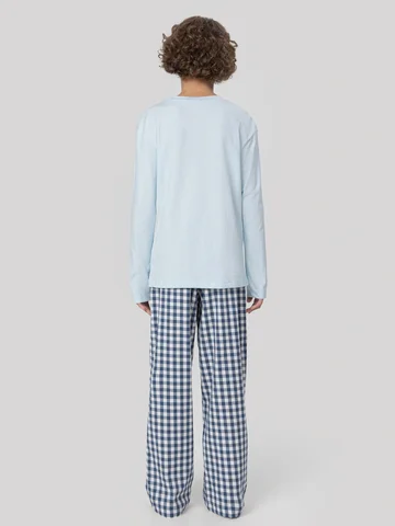 Домашний комплект для мальчиков — это удобный и практичный выбор для отдыха и сна. Состоит из лонгслива и брюк из мягкого, дышащего хлопка, который нежно контактирует с кожей и не вызывает раздражений. Лонгслив с круглой горловиной и длинными рукавами обеспечивает комфорт в прохладную погоду, а аккуратная отделка по низу повышает его износостойкость. Свободный крой не ограничивает движений, создавая ощущение легкости. Брюки с эластичным поясом легко надеваются, комфортно сидят на талии и не мешают активности. Подгибка по низу брюк делает комплект стильным и завершенным. Уход за комплектом прост — он легко стирается, быстро сохнет и сохраняет форму. Лаконичный дизайн позволяет носить его не только дома, но и на ночевках вне дома, сохраняя уют и свободу.