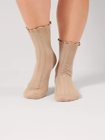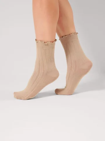 Женские носки с рюшей выполнены из хлопкового полотна с добавлением полиамида и эластана. Мягкий хлопок, входящий в состав изделия, обладает высокой воздухопроницаемостью, впитывает влагу и подходит для чувствительной кожи. Добавление эластана увеличивает износостойкость и прочность. Удобные носки прекрасно подходят для повседневного использования и активного отдыха. Рекомендуется стирать при температуре до 40 градусов.