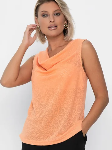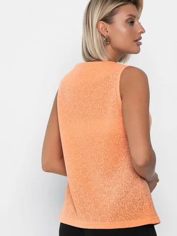 Топ из кружевного трикотажа (жаккард) в оранжевом цвете — это изысканное дополнение к вашему гардеробу. Этот топ без рукавов с прямым низом и без разрезов подойдет как для офиса, так и для повседневных образов. Приталенный силуэт подчеркнет вашу фигуру, а стильная горловина в форме качелей добавит образу особого шарма. Наденьте топ с любимой юбкой-карандаш или джинсами, дополните образ аксессуарами и почувствуйте себя уверенно и привлекательно.