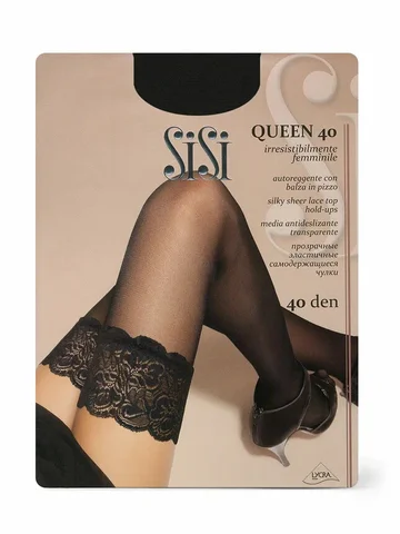 Эластичные чулки 40 DEN с кружевной резинкой на силиконовой основе и невидимым мыском.