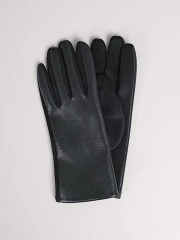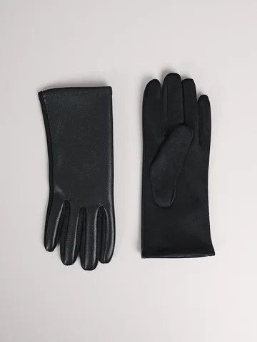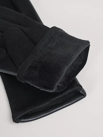 Женские перчатки из искусственной замши, декорированы отстрочкой и кожанными пуговицами, на большом и указательном пальцах вышивка "сенсорными" нитками, размер 18