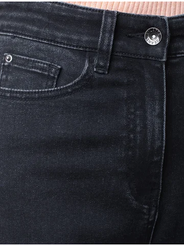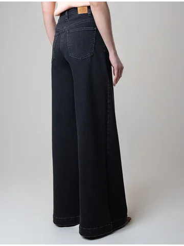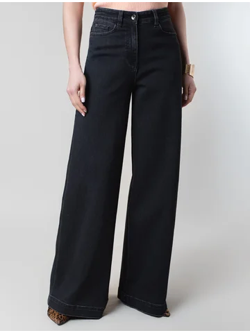 Стильные расклешенные джинсы трубы насыщенного черного цвета из эластичного денима созданы для современного образа и максимального комфорта. Плотный премиальный материал обеспечивает надежность и приятные ощущения при носке, а добавление эластичных волокон делает посадку особенно удобной. Высокая посадка и расширенный крой к низу визуально вытягивает рост и подчеркивает достоинства, делая силуэт женственным, а декоративная стирка добавляет акцент. Эти широкие джинсы - оличное решение для девушек размера полюс сайз. Детали продуманы до мелочей: мягкий пояс не сдавливает живот, задние карманы и шов расположены на правильном уровне, что бы визуально подтянуть фигуру, а натуральный материал сохраняет форму после длительной носки и частых стирок. Джинсы трубы подходят для высоких девушек и женщин, а так же не высоких, представлена различная ростовка.