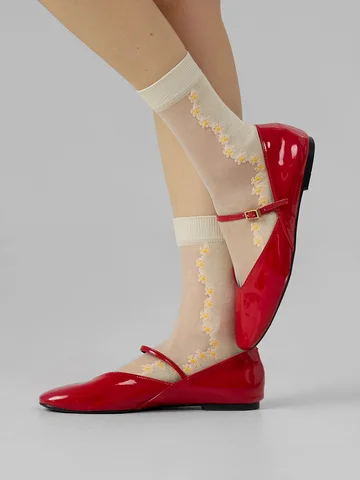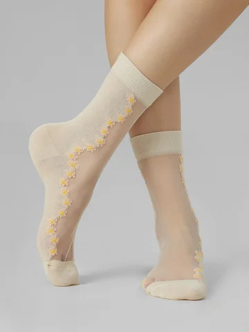 рис.3147. Женские носки классической длины с прозрачной зоной на паголенке и верхней части следа с рисунком в виде мелких цветочков.