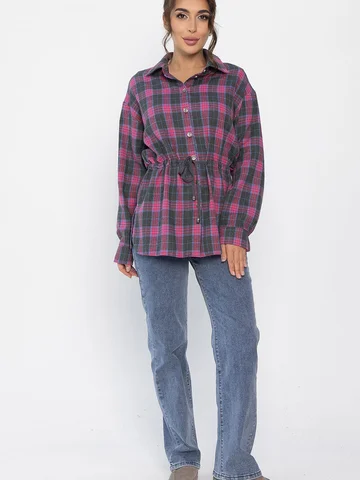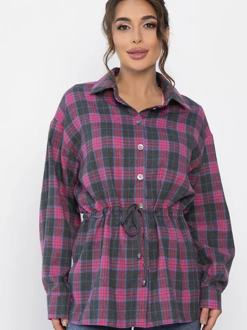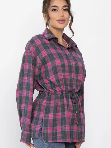 Рубашка в клетку в розово-сером цвете станет стильным акцентом в вашем гардеробе, позволяя экспериментировать с разными образами. Ее можно носить как самостоятельный элемент или использовать в многослойных ансамблях. По бокам есть разрезы. Рубашка с воротником-стойкой и аккуратной застежкой на пуговицы выглядит современно и элегантно. Спущенное плечо добавляет расслабленности, а кулиска на талии подчеркивает фигуру. Создайте свой уникальный стиль с нашей новой клетчатой рубашкой!