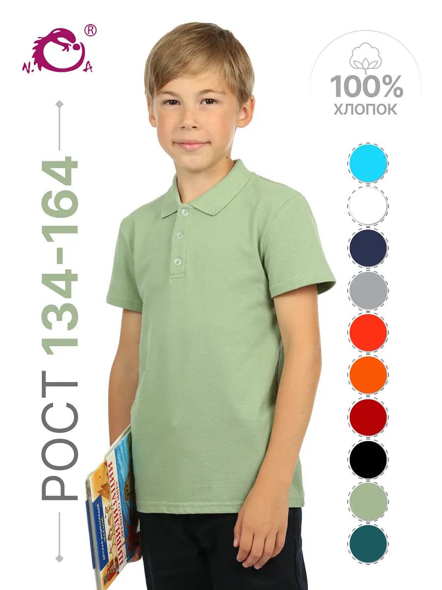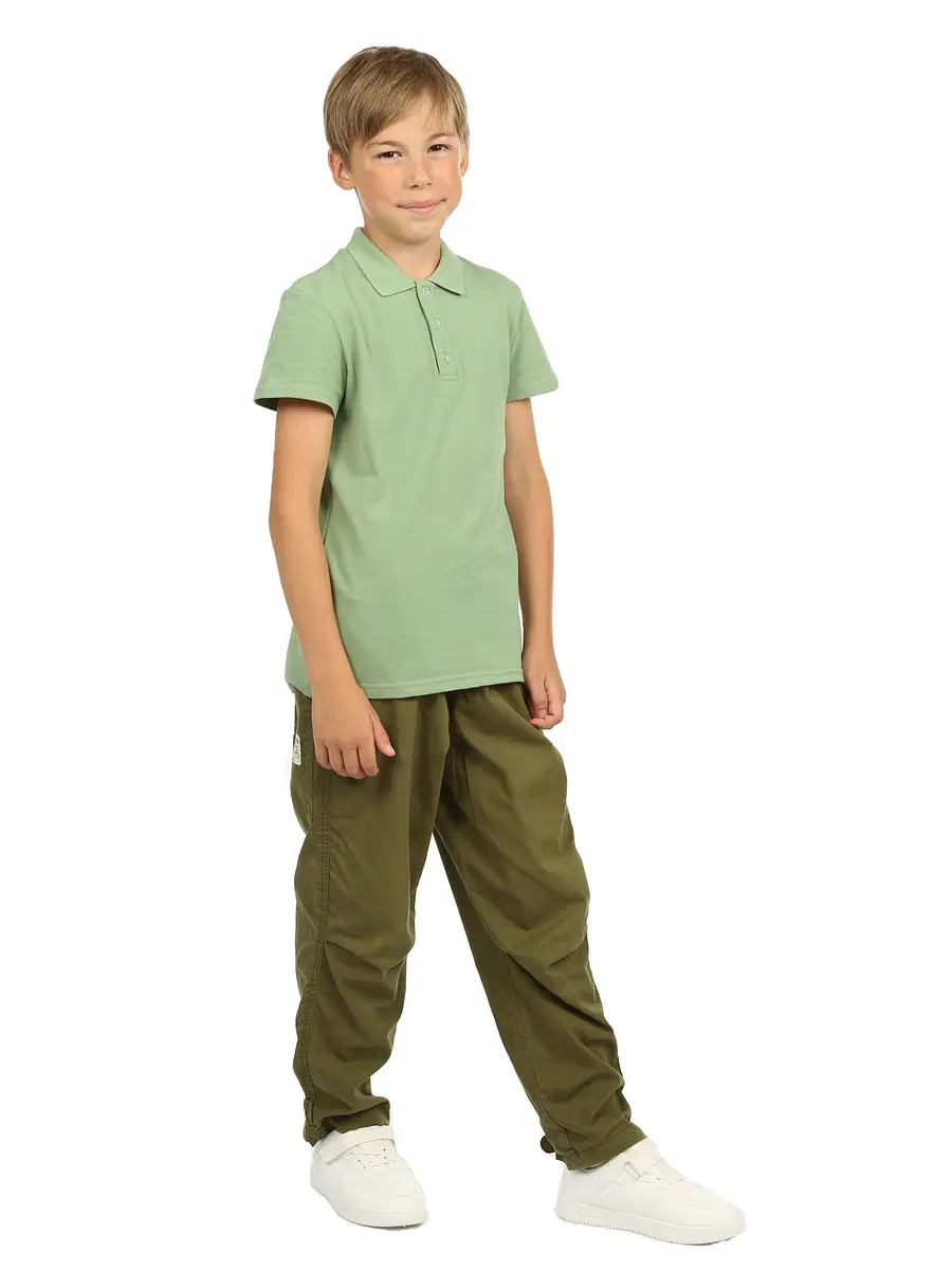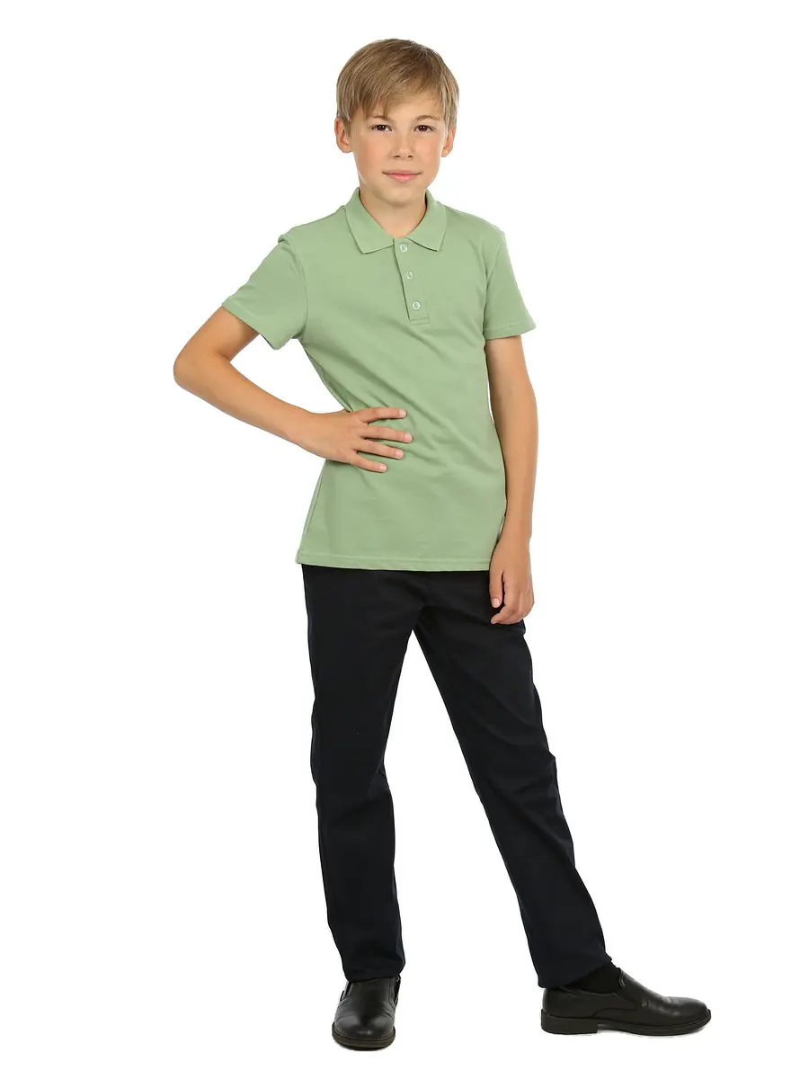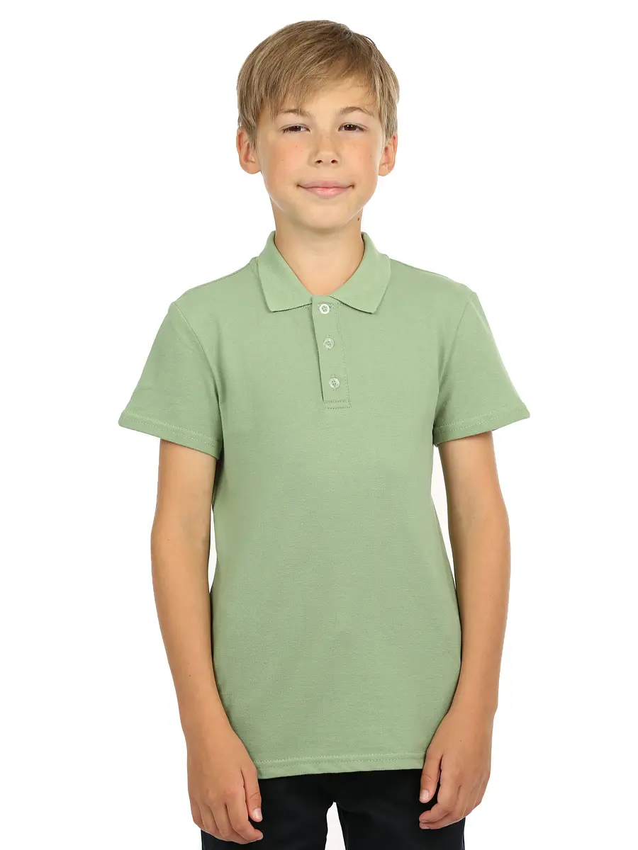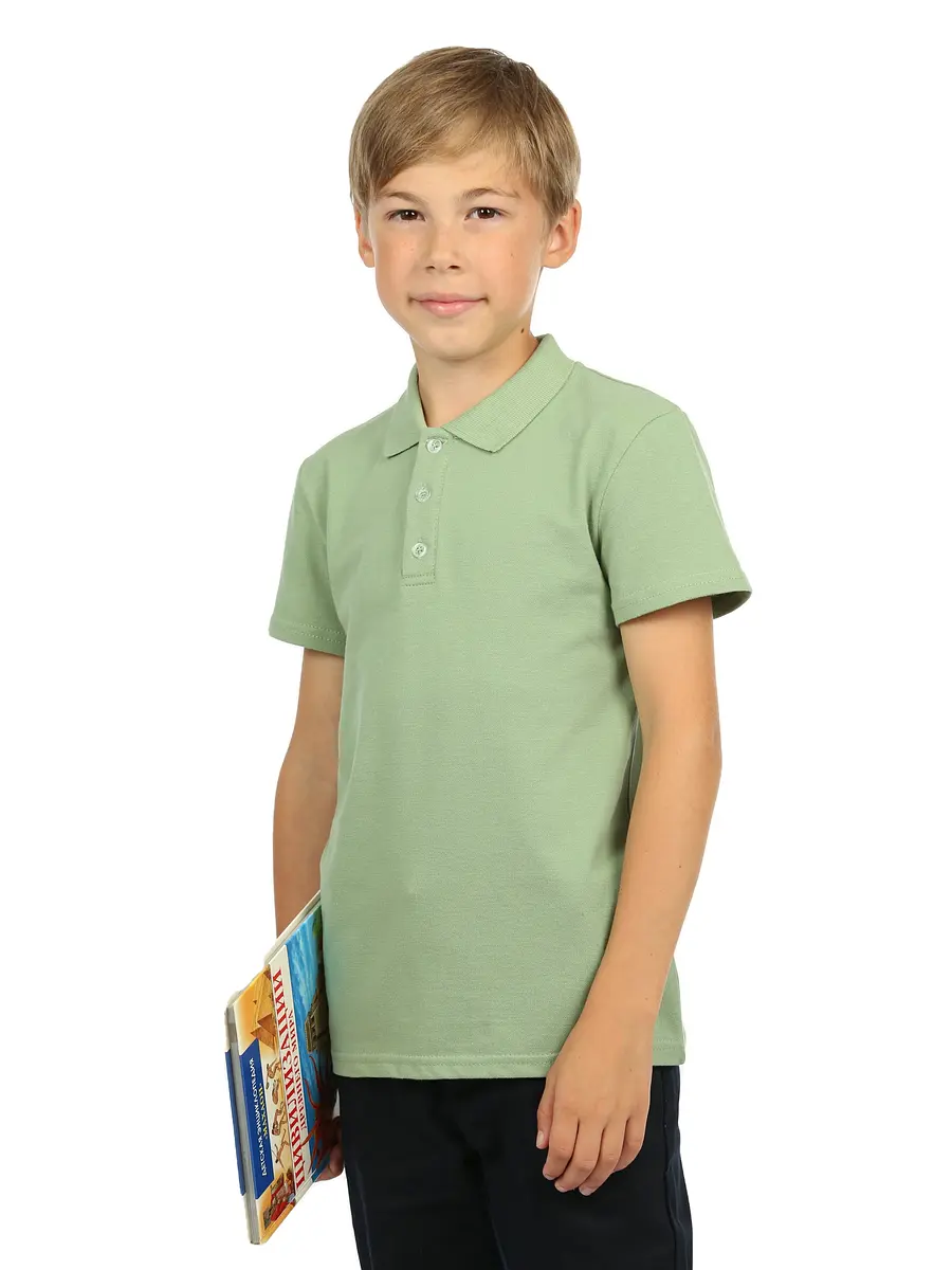 Светло-зеленое поло для мальчика с коротким рукавом. Классическая модель прямого кроя с элегантным отложным воротником и застежкой на пуговицах. Футболка сшита из ткани пике: 100% хлопок. Хлопковая ткань очень мягкая и комфортная к телу, хорошо пропускает воздух, не вызывает аллергических реакций и раздражений даже на чувствительной коже.
